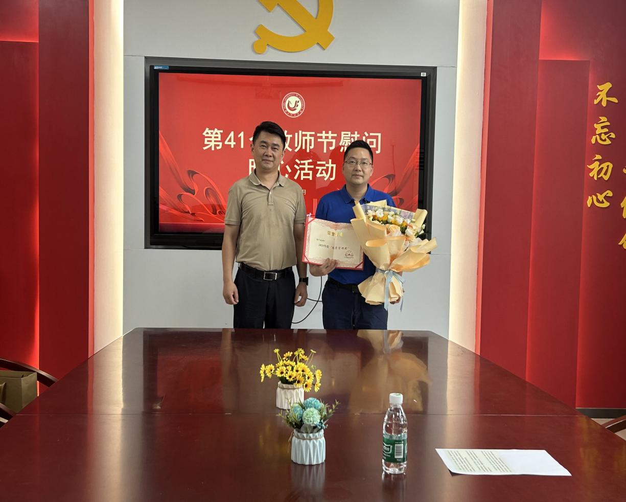 在第41个教师节来临之际,为弘扬尊师重教优良传统,表彰在教育一线默默奉献的优秀教师,9月10日上午,校领导到星空(中国)慰问教师代表。