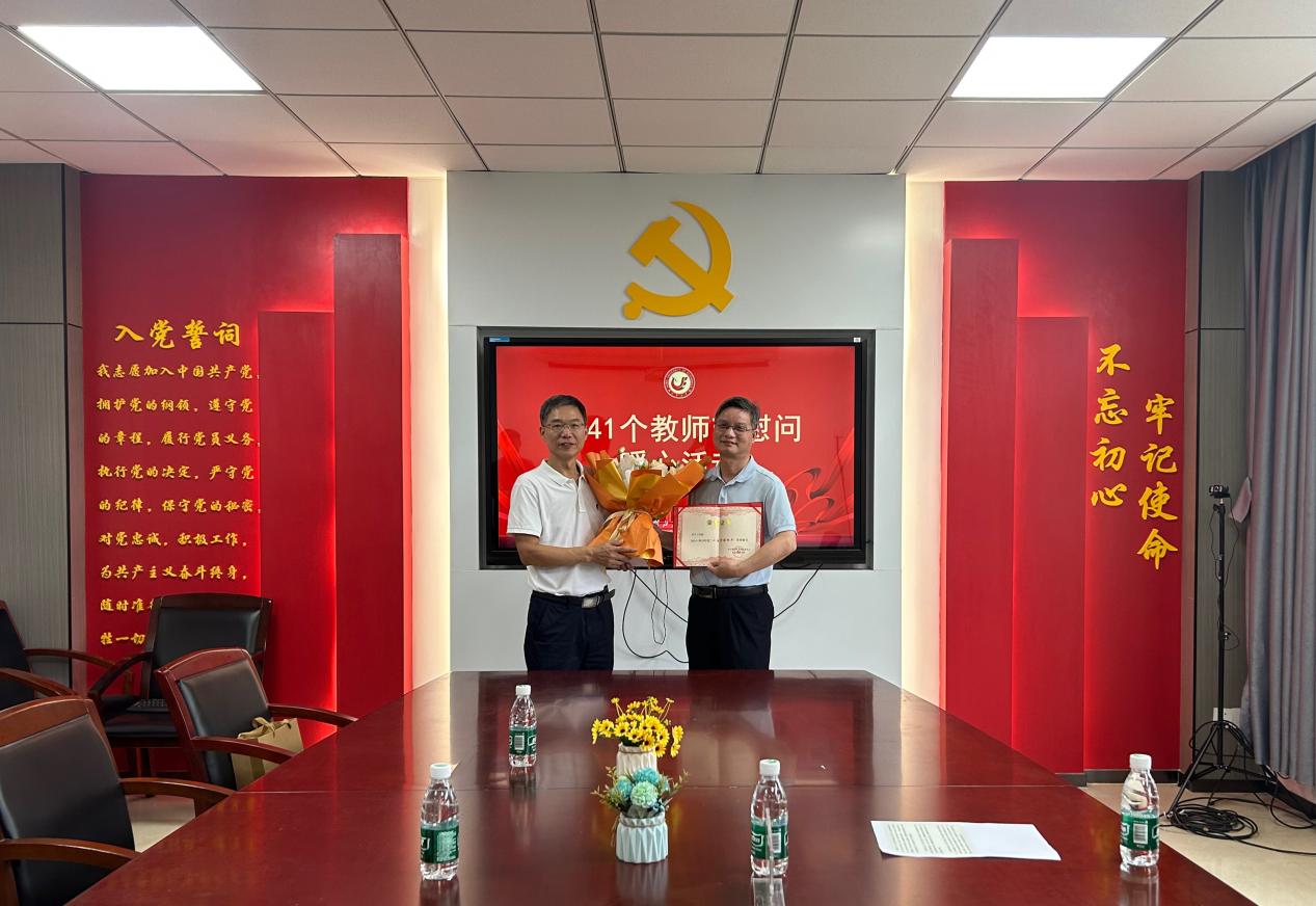 上午8时30分,校党委副书记汪达到星空(中国)会议室为王金庭老师颁发"十佳师德标兵"奖。汪书记对王老师的优秀师德师风给予了肯定,王老师扎根教育二十余载,始终以德立身、以爱育人,用实际行动诠释了'学高为师,身正为范'的深刻内涵。"王金庭老师表示:"这份荣誉既是肯定,更是鞭策。未来将继续坚守教育初心,做学生成长路上的引路人。"